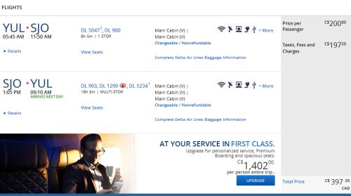Delta is showing some great prices from Montreal to San Jose, Costa Rica (SJO) for $397 CAD roundtrip including taxes.