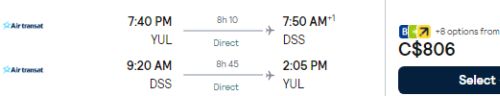 3. Search for a flight from Montreal (YUL) to Dakar, Senegal (DSS)
